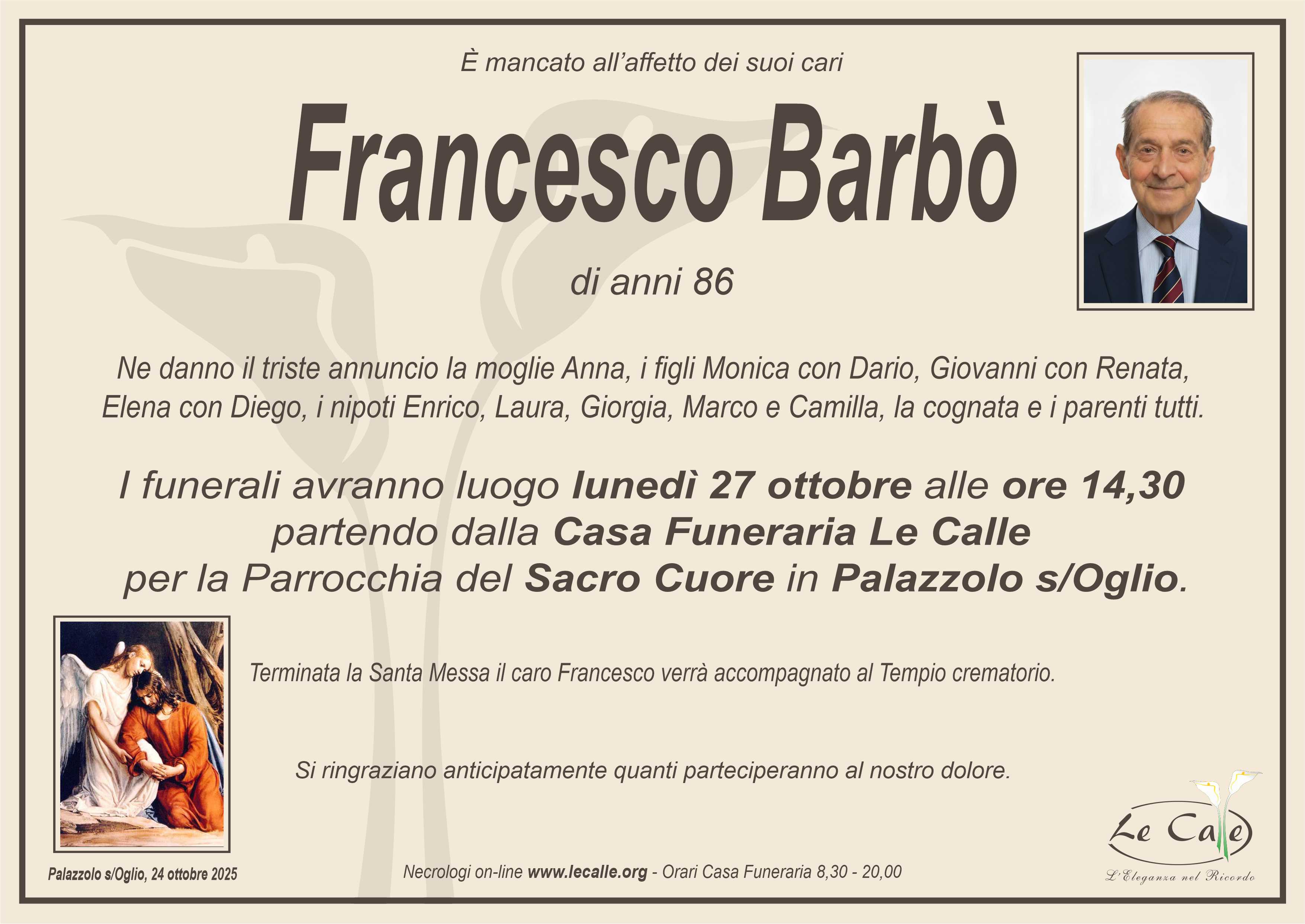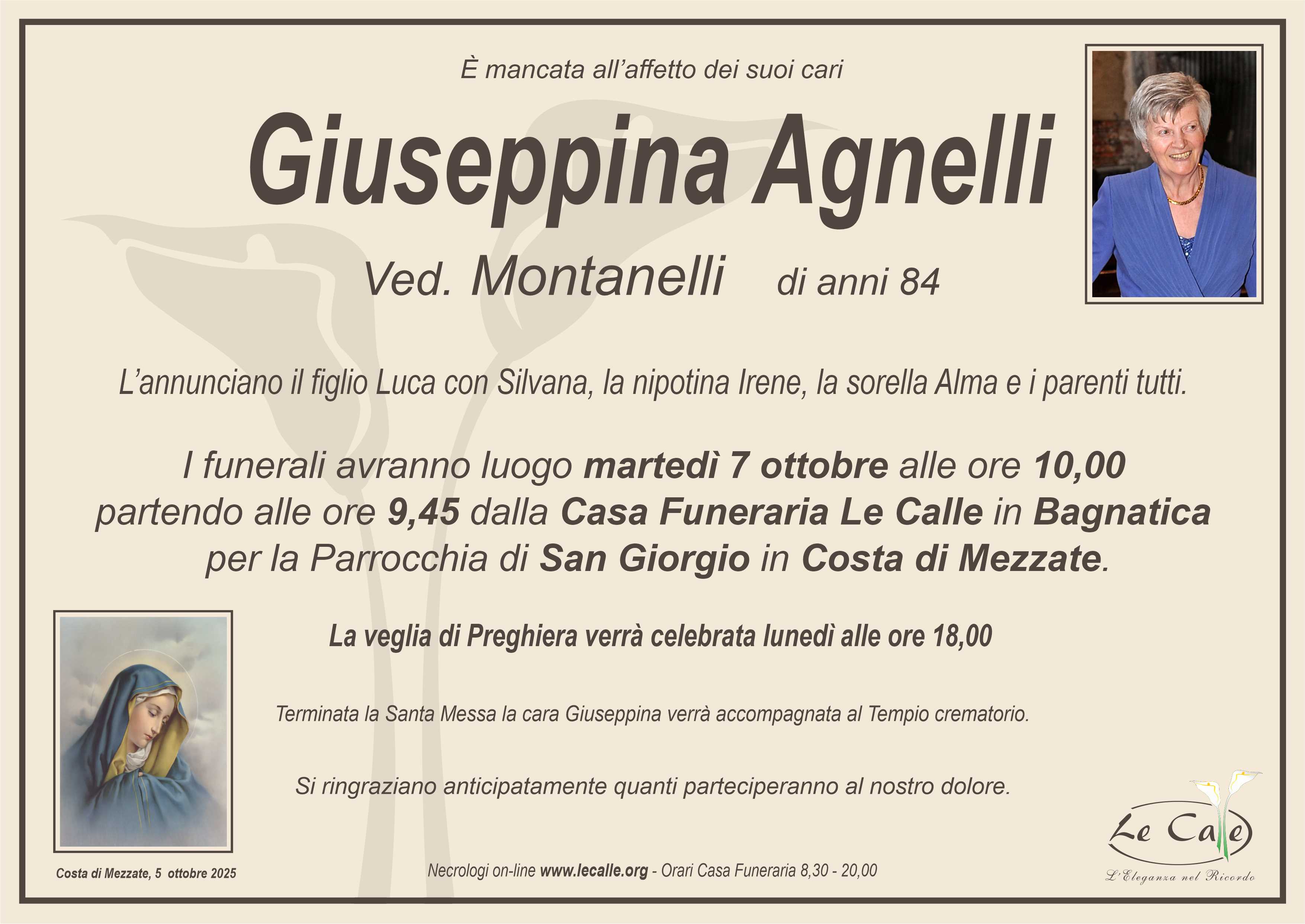 In questa pagina raccogliamo i necrologi recenti con la possibilità di inviare messaggi di cordoglio e partecipazione. Siamo qui per facilitare il tuo gesto di affetto e solidarietà attraverso le condoglianze. La tua partecipazione è preziosa e offre conforto in momenti difficili. Se hai bisogno di assistenza contattaci!